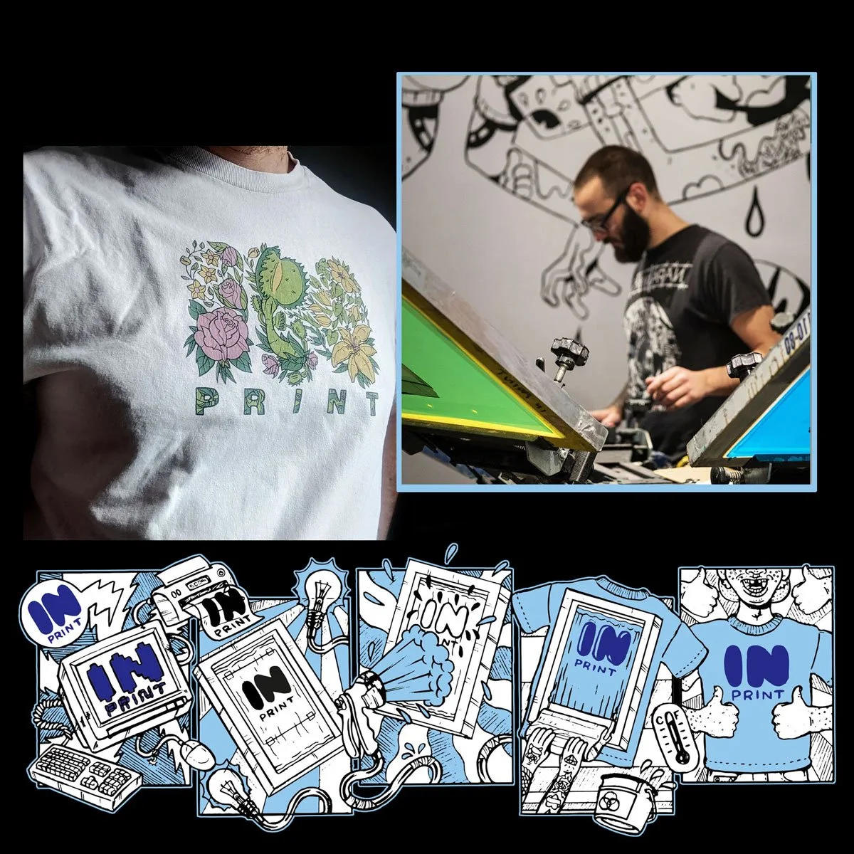 Working with the illustration concepts of artist Jeremy Hansen, I was able to develop the identity of InPrint with his edgy urban style. I used his artwork for festival uniforms, banners, website design, social media and general company promotion.